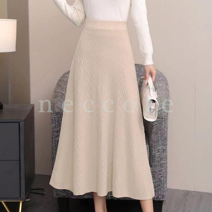 洗練されたデザインで大人可愛く着こなせるニットロングスカート。