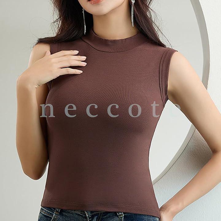 首元をきれいに見せてくれるハイネックのノースリーブ。
