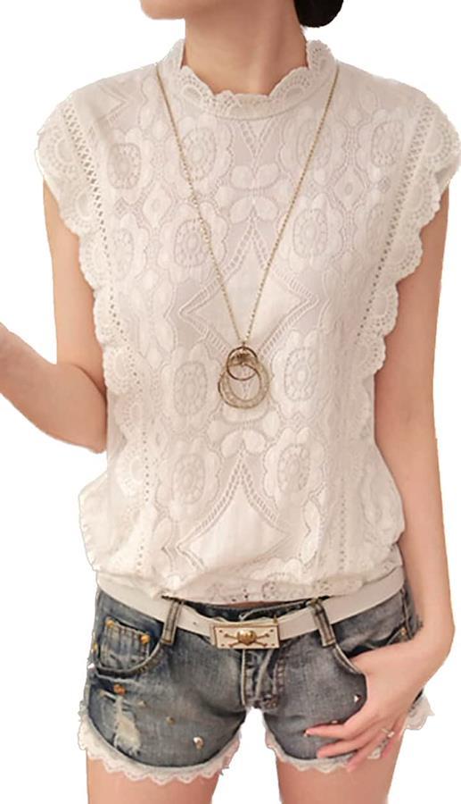 Women's Sleeveless Lace Shirt, Loose, A-line, Breathable, Fashionable