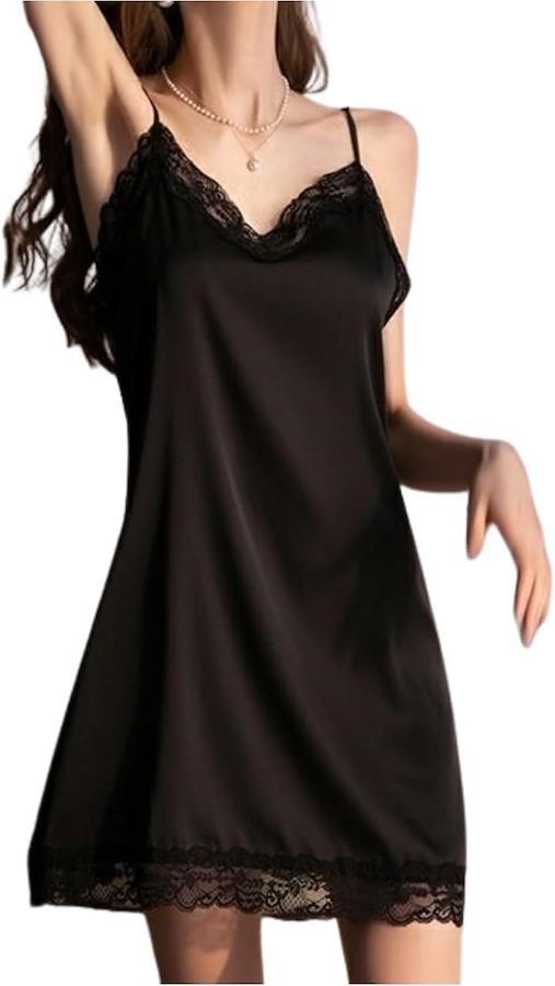 胸元と裾にあしらわれたレースが、シンプルながらも大人の可愛らしさを引き立てます。
