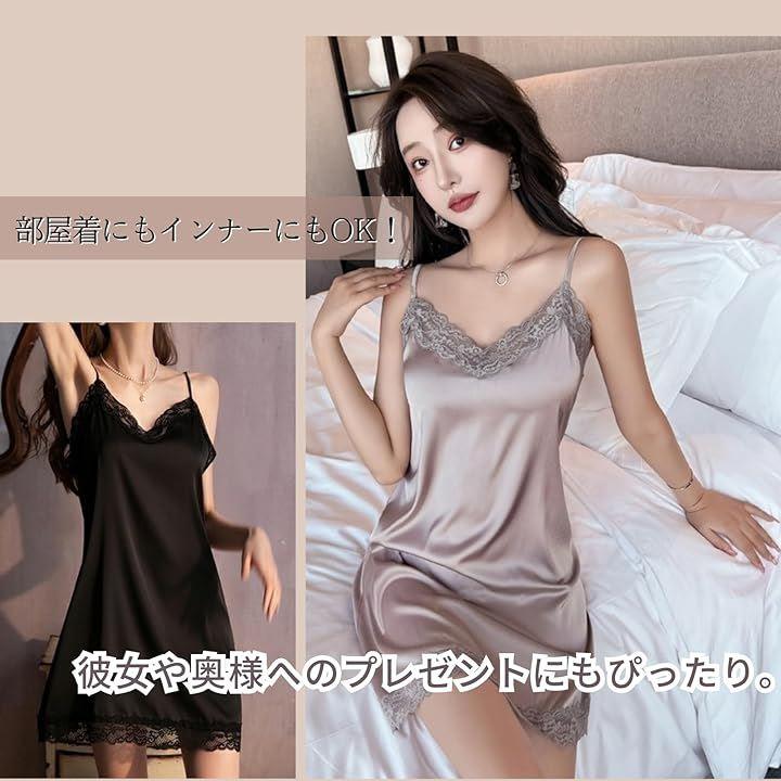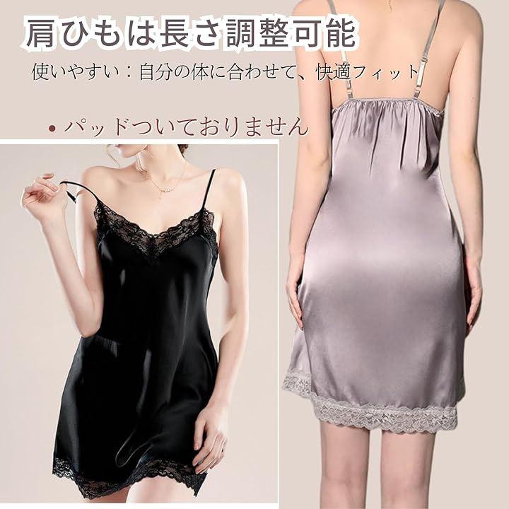 胸元と裾にあしらわれたレースが、シンプルながらも大人の可愛らしさを引き立てます。