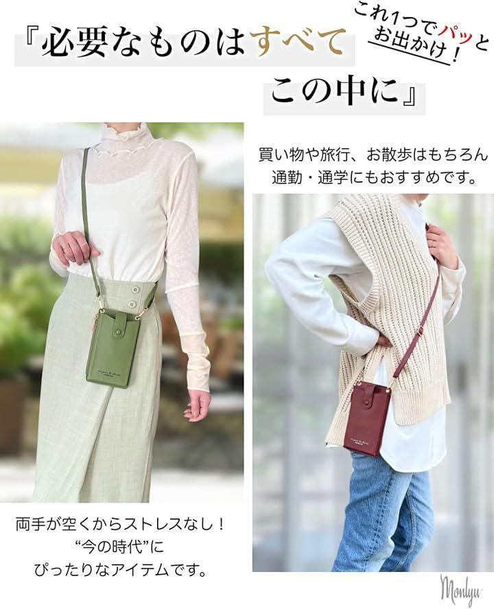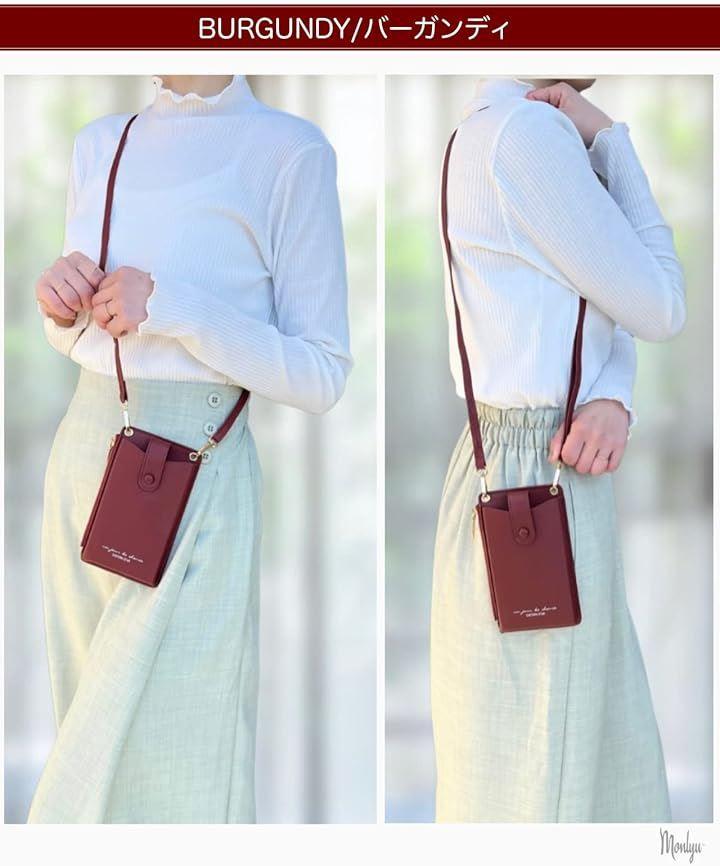 「身軽なスタイルへ」 ポシェットタイプのスマホポーチは斜めがけ・肩かけ出来て両手があくからストレスなし。シンプルな縦型に約2cmマチのスマホポケット+フラップ付きで大きめスマホもスッキリ安心して収納できます。