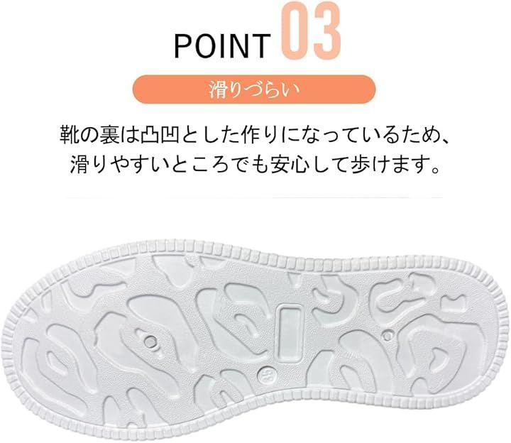 「歩きをサポートする凸凹仕様」靴の裏は凸凹仕様になっており、滑りそうな地面も安心して歩くことができる点がこのシューズの魅力です。