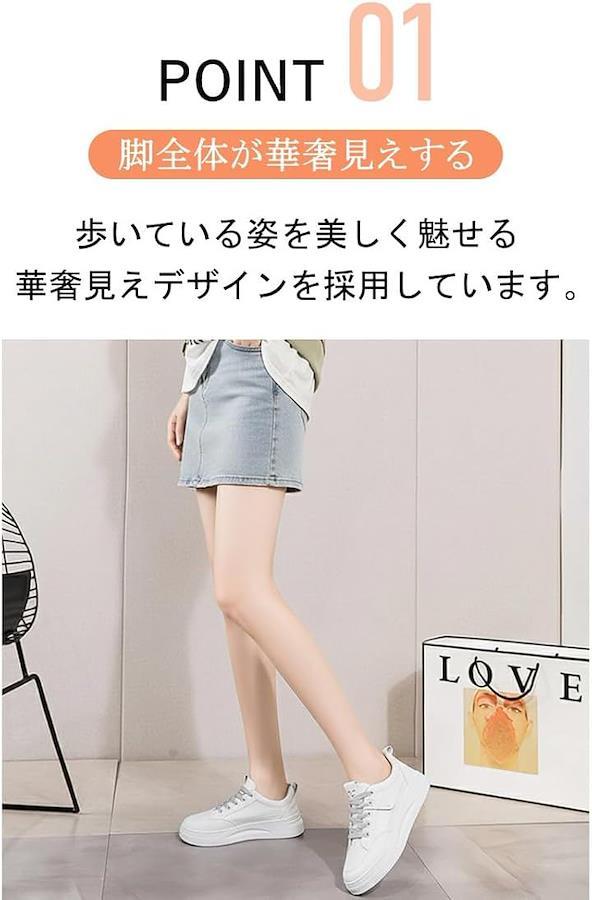 「特徴」脚を細く見せスタイルアップを叶える厚底ソールが特長です。