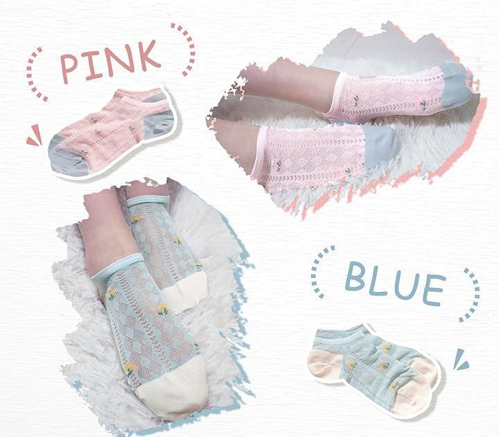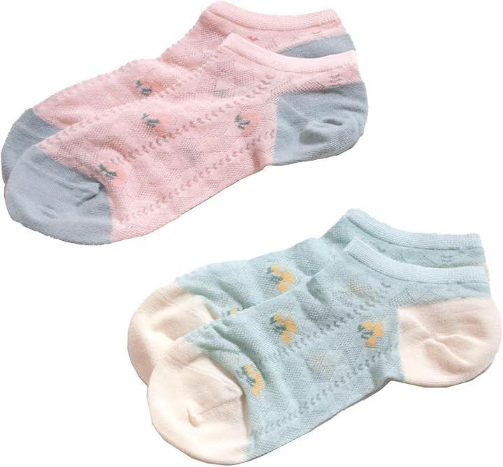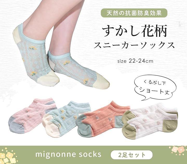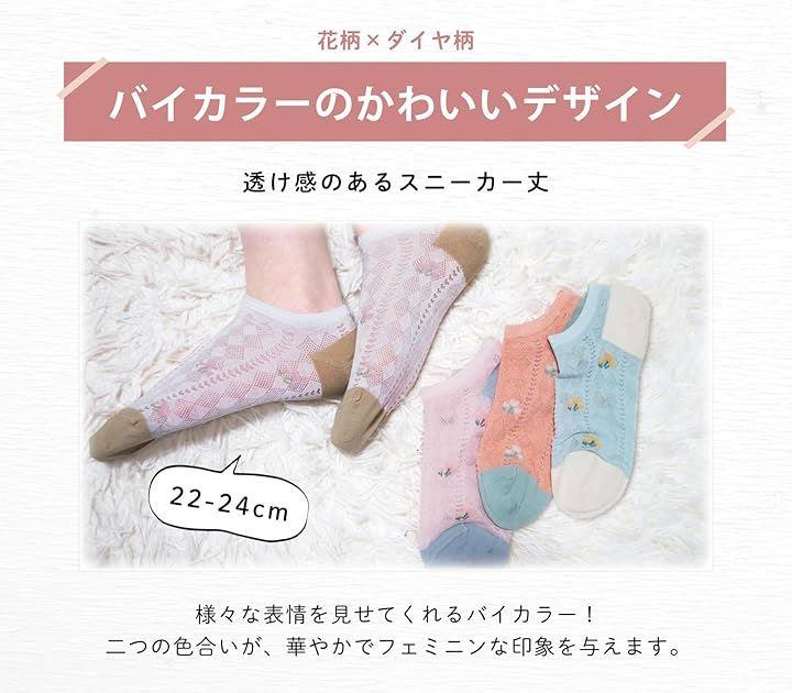 「特徴」花柄/透け感あり/スニーカー丈/バイカラー/よもぎ繊維/抗菌/防臭/2足セット
