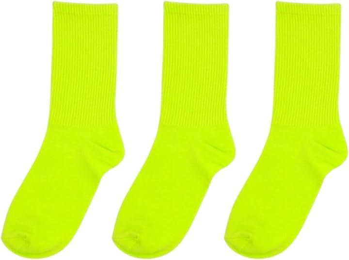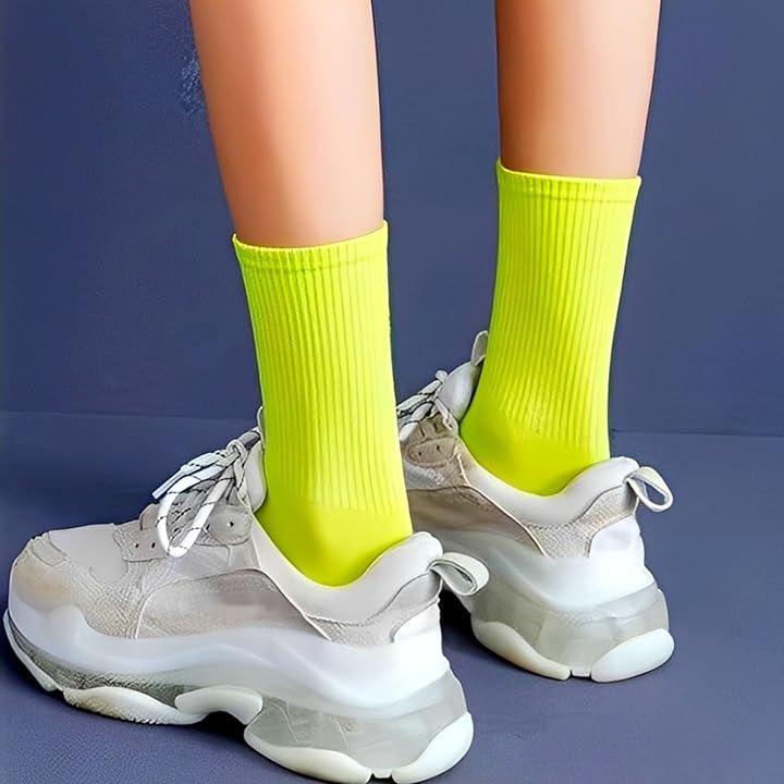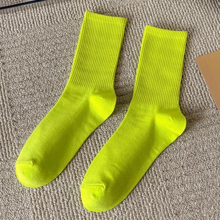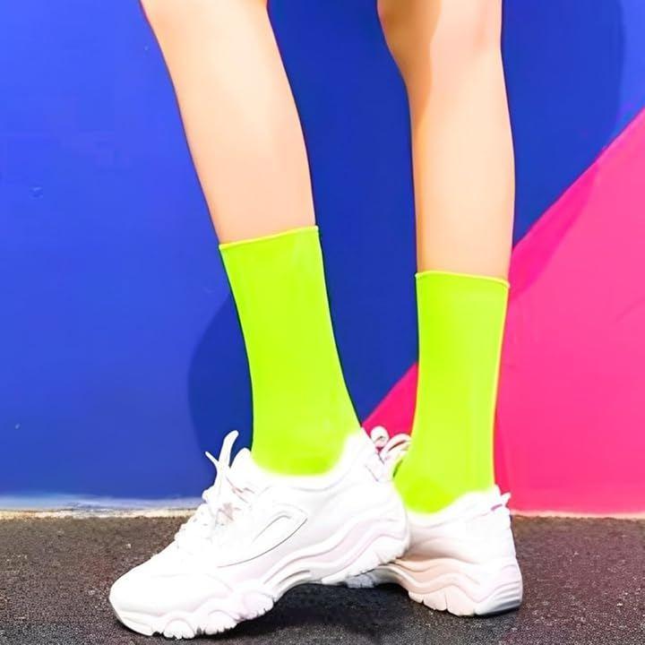 Women's socks in neon, fluorescent, vivid colors, flashy, colorful, and solid colors