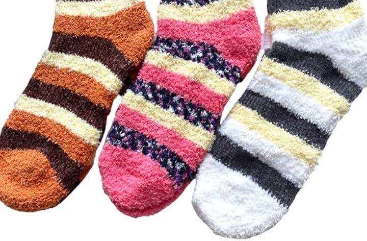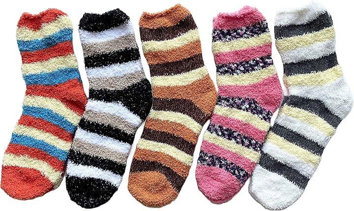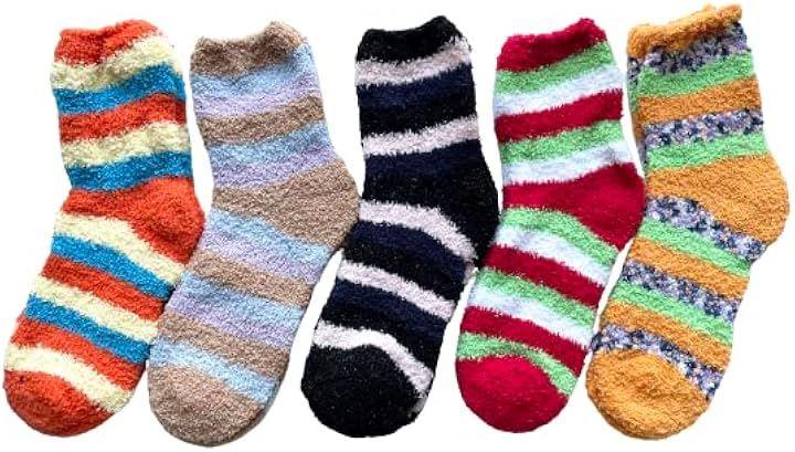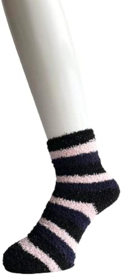 あたたかもこもこ部屋用ルームソックスです、おしゃれなボーダー柄 5足セット。