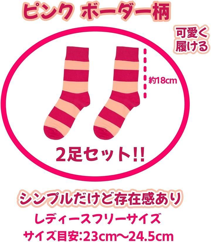 セット内容//ピンクのボーダー柄(ストライプ柄)のソックス2足セット 素材:ポリエステル レディースフリーサイズ サイズ目安23cm~24.5cm