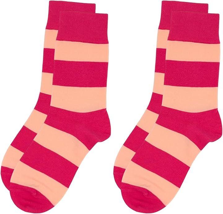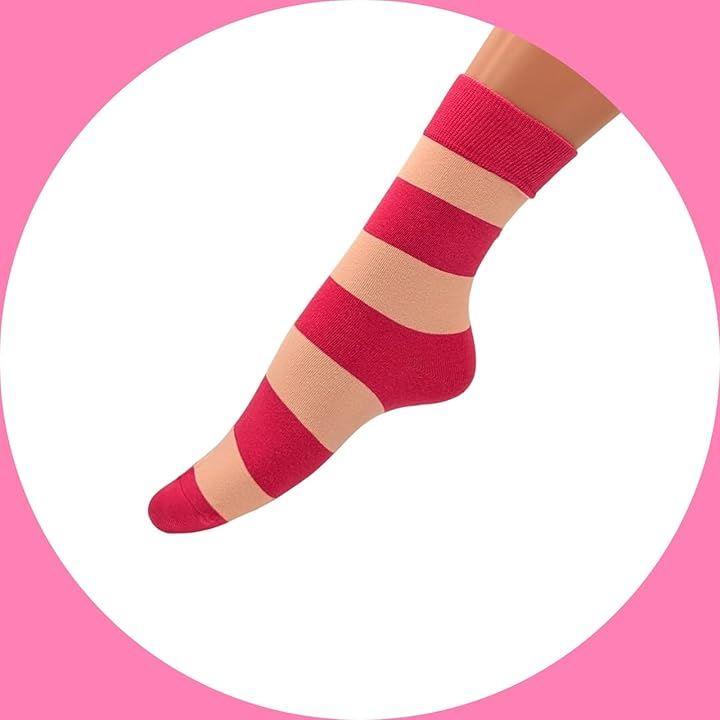 足元を可愛くコーデ。ピンクのボーダー柄(ストライプ柄)のレディースソックス2足セットです。