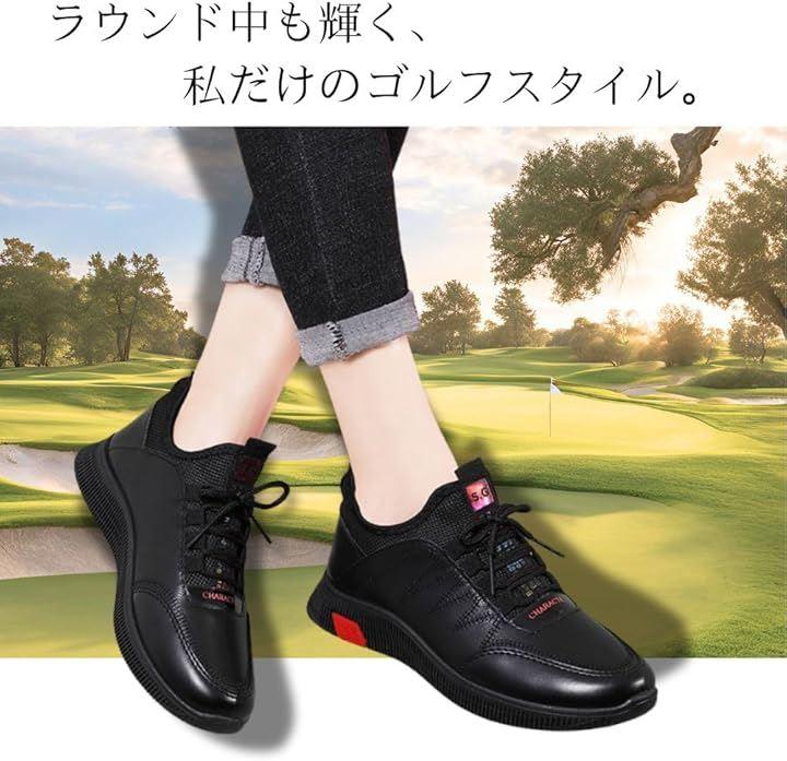 「スタイリッシュカジュアルスタイルデザイン」ゴルフシューズでありながら、日常にも溶け込むおしゃれなデザインが魅力。 機能性だけでなく、モダンなカラーリングと女性らしいシルエットを抑えたこのシューズは、ゴルフ場でも街中でもファッショナブルな印象を与えます。