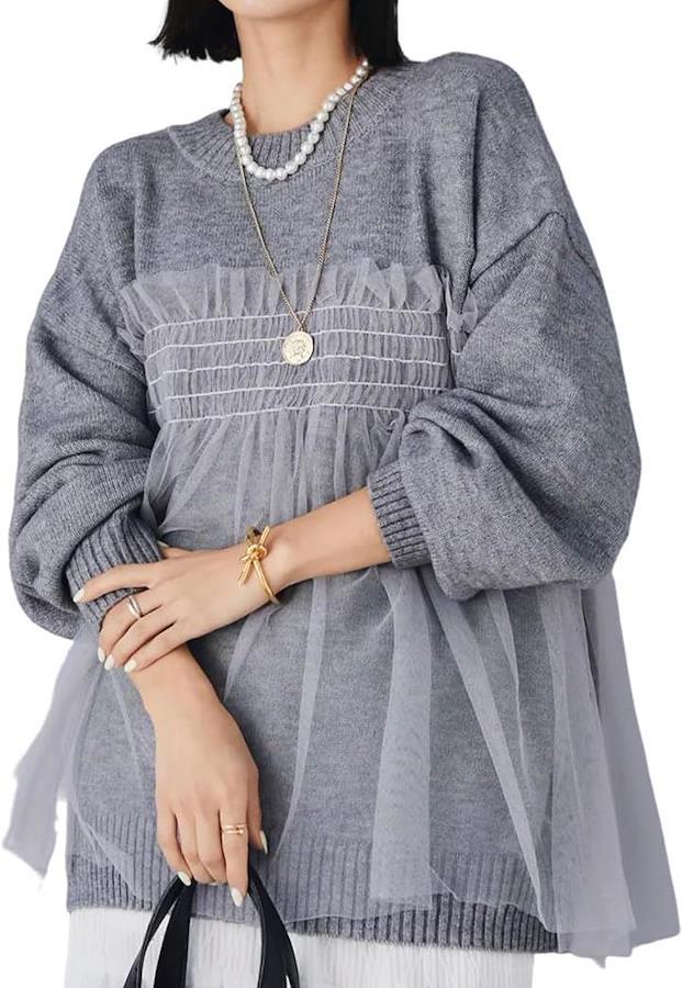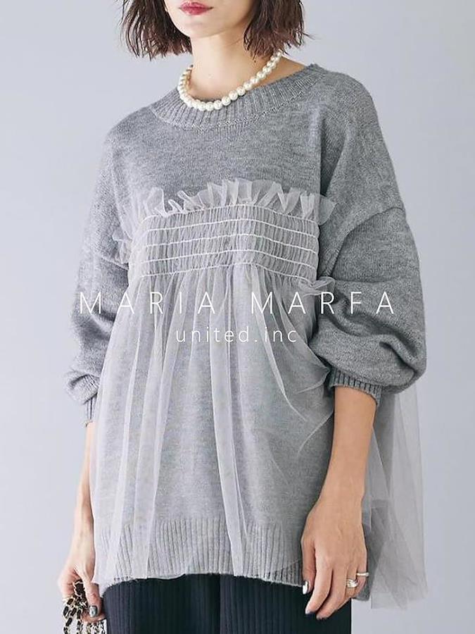 チュールが施された透明感のある涼しげなプルオーバーが登場しました。