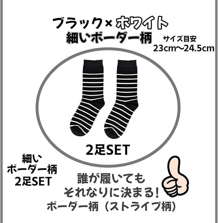 シンプルなストライプ柄で、どんなコーディネートにも合わせやすいデザイン違いのレディースソックス2足セットです。