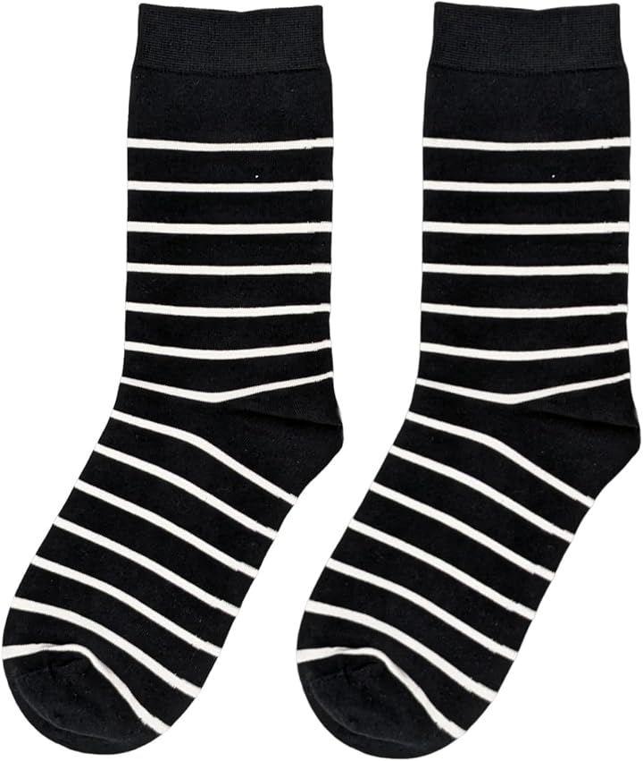 Women's Striped and Bordered Black Crew Socks, Set of 2