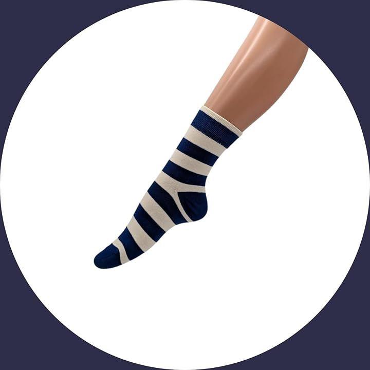 シンプルながらも存在感抜群なネイビーxホワイトのストライプ柄レディースソックスです