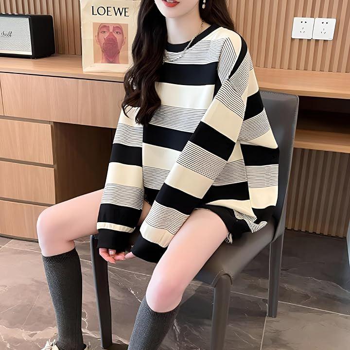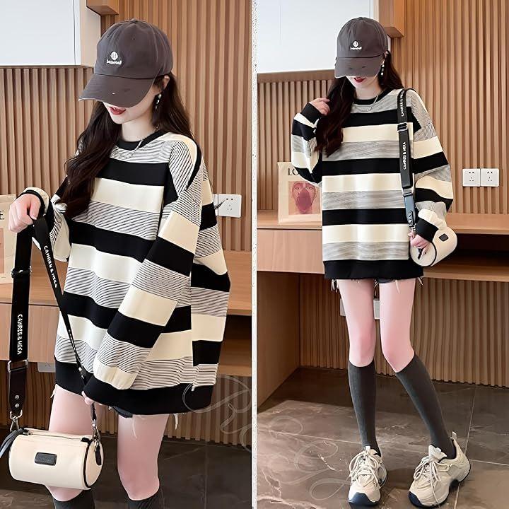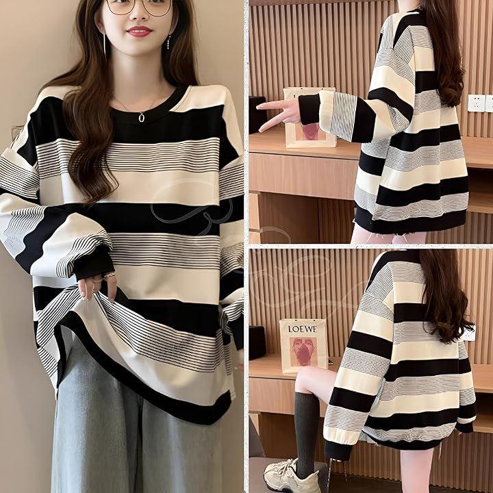 *ボーダー柄 シンプルながらも存在感のあるボーダー柄が、清潔感とカジュアル感を両立し、トレンド感のある韓国風ファッションが簡単に楽しめます。