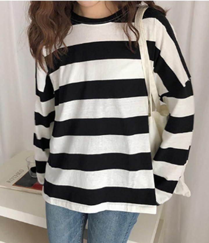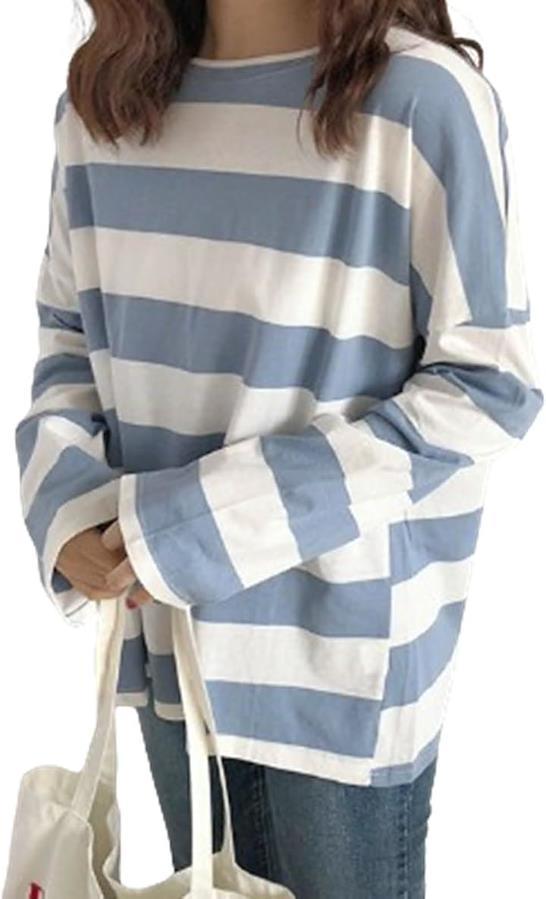 Women's Striped Top, Long Sleeve T-Shirt, Cut and Sewn, Oversized, Long Length, Cute, Loose Fit, Women's Striped Top, Long Sleeve, All Season, Striped