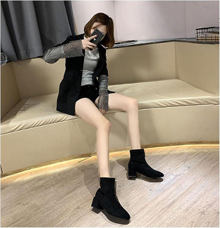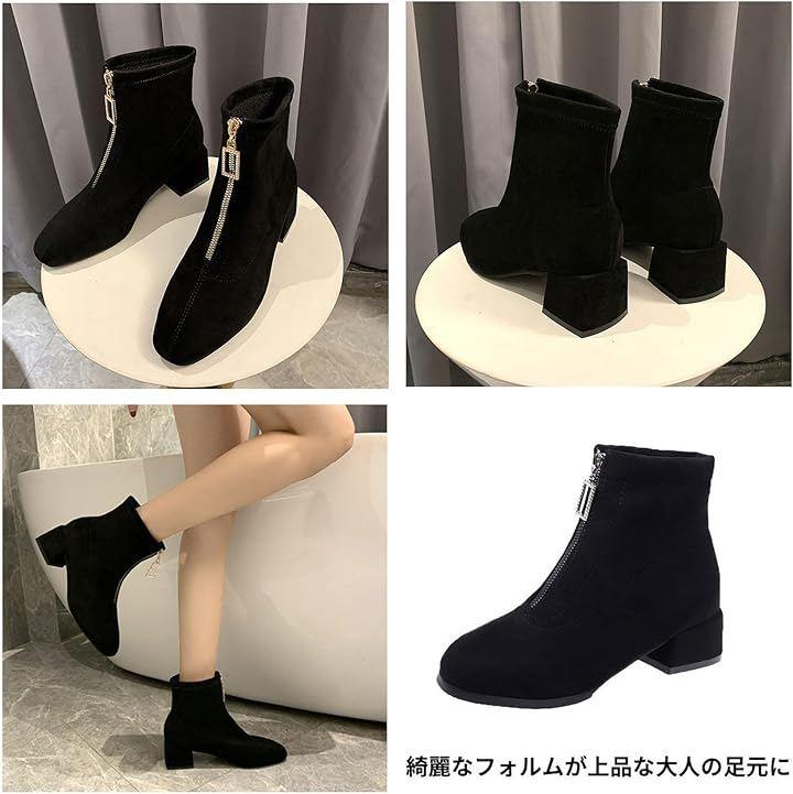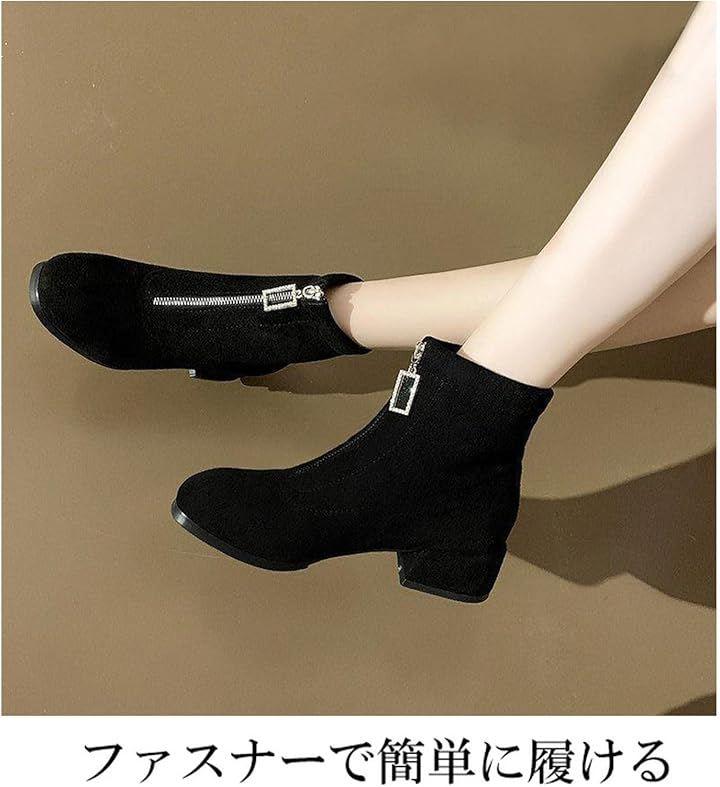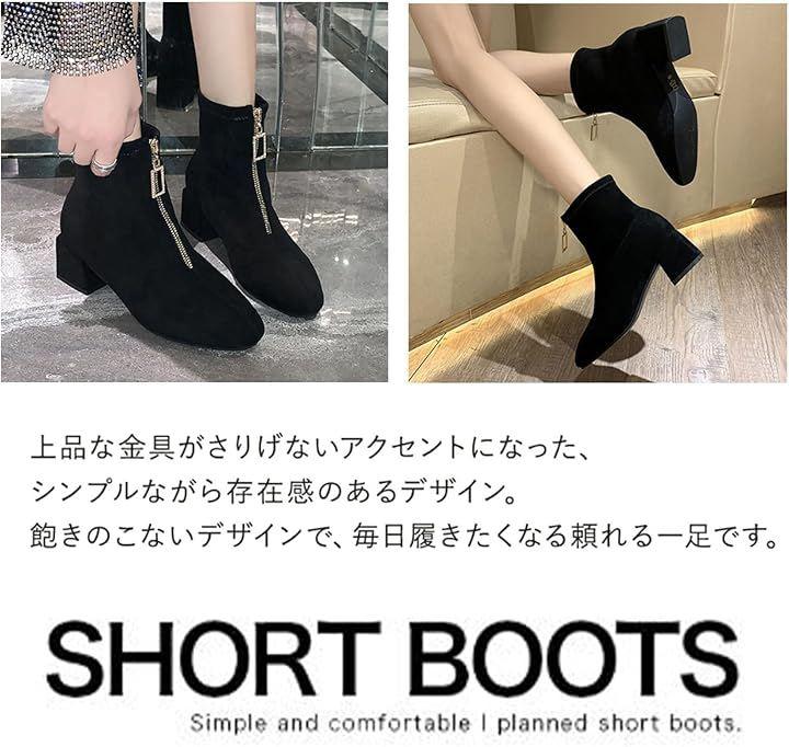 スエード調のソフトな質感が足をやさしく包み、長時間履いても快適。スクエアヒールで安定感とスタイルアップを両立♥