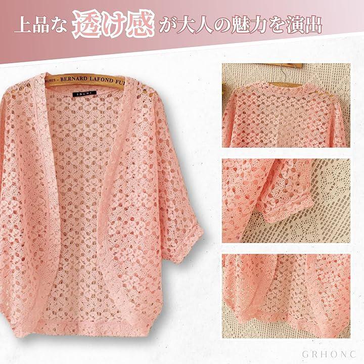 「春夏にぴったりの薄手カーディガン」軽やかなシアー素材を使用したレースデザインのカーディガン。