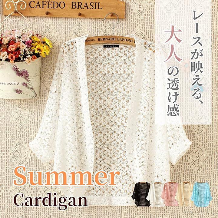 「春夏にぴったりの薄手カーディガン」軽やかなシアー素材を使用したレースデザインのカーディガン。