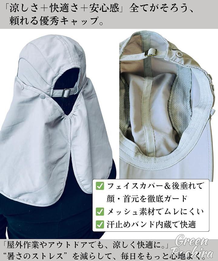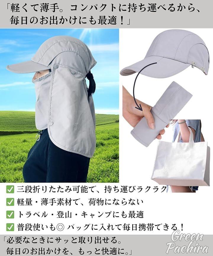 「これ一つで顔周りカバー」顔、首、耳周りまで360°しっかり紫外線をガードするレディース向けの日除け帽子です 。