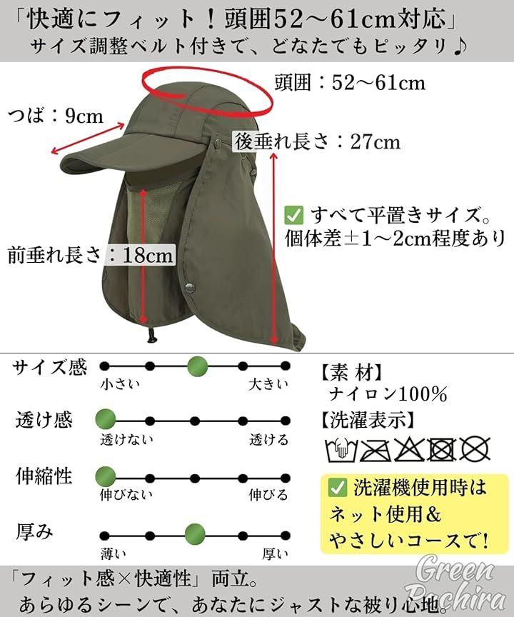 「仕様」◉素材:ナイロン100% ◉頭囲:52~61cm サイズ調整可能。