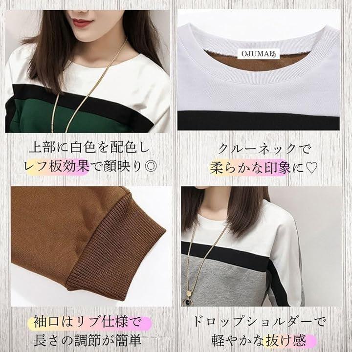 Women's sweatshirt, autumn, winter, spring, loose, thin, top, cut and sew, long sleeve T-shirt, drop shoulder, tri-color