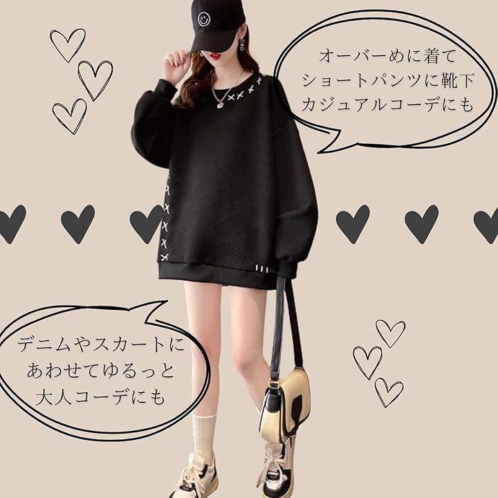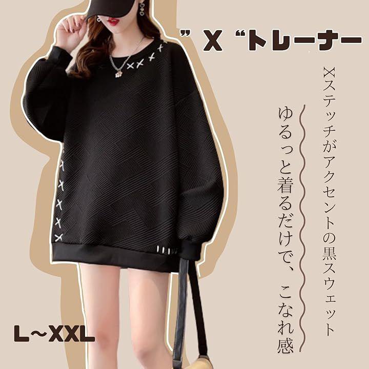 レディース スウェット 黒/トレーナー 黒/きれいめカジュアルの定番として、通勤・通学・ワンマイル・旅行まで幅広く活躍。