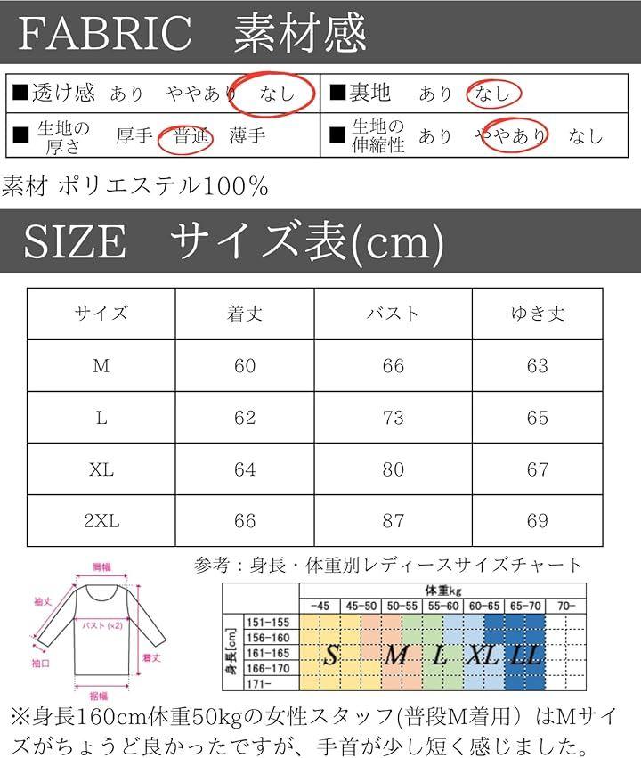 「素材」ポリエステル100%「カラー」ブラック(黒)、ホワイト(白)「サイズ(cm)」M:着丈60/バスト66/ゆき丈63 L:着丈62/バスト73/ゆき丈65 XL:着丈64/バスト80/ゆき丈67 XL:着丈66/バスト87/ゆき丈69