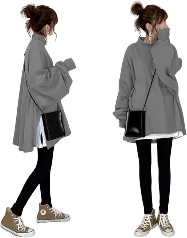 ゆったりとしたオーバーシルエットが小顔見えを叶え、体型を自然にカバーするトレーナー。