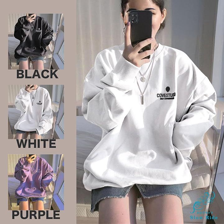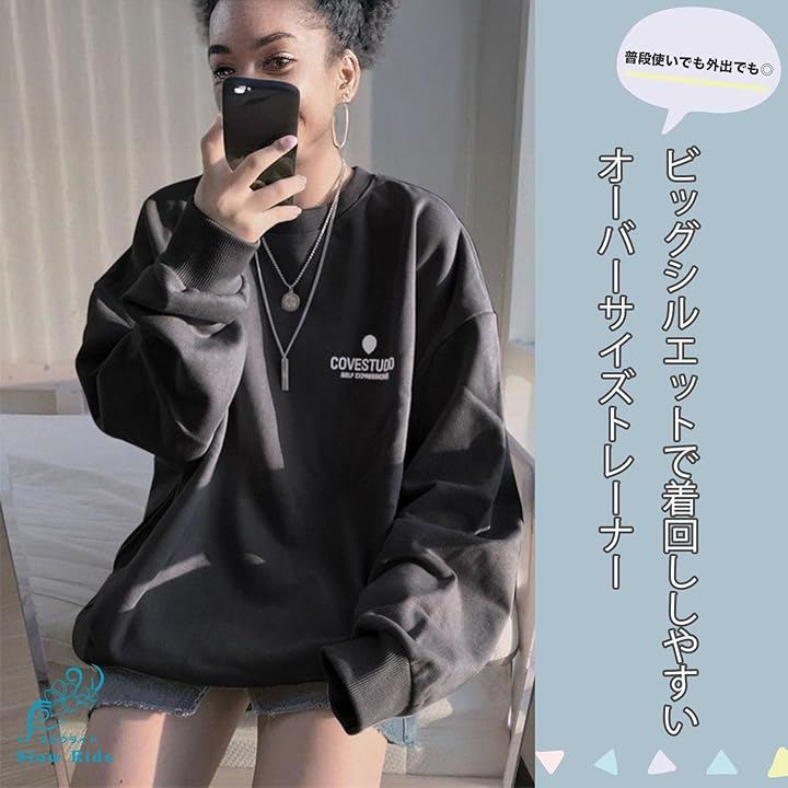 ゆったりとしたビッグシルエットのトレーナーが、体型を自然にカバーしながら大人可愛く演出。