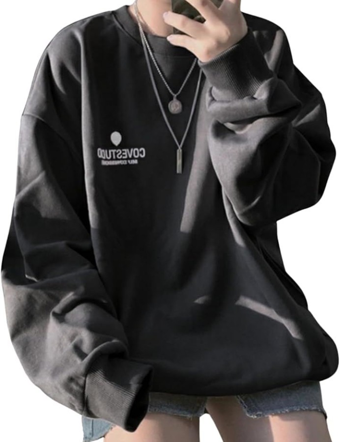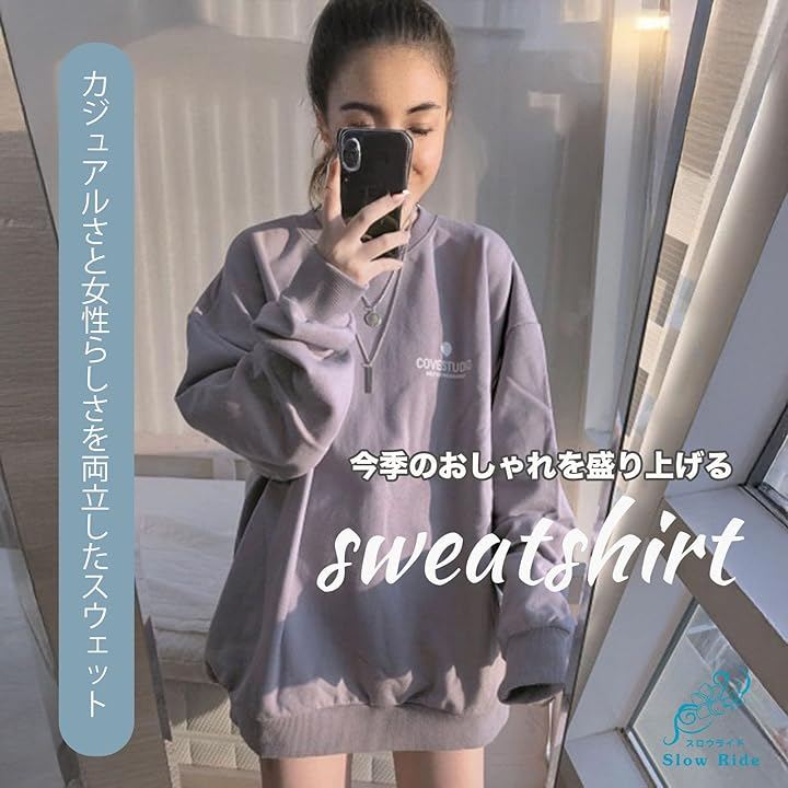 ゆったりとしたビッグシルエットのトレーナーが、体型を自然にカバーしながら大人可愛く演出。