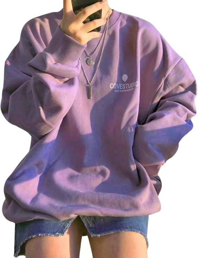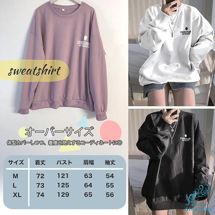 ゆったりとしたビッグシルエットのトレーナーが、体型を自然にカバーしながら大人可愛く演出。