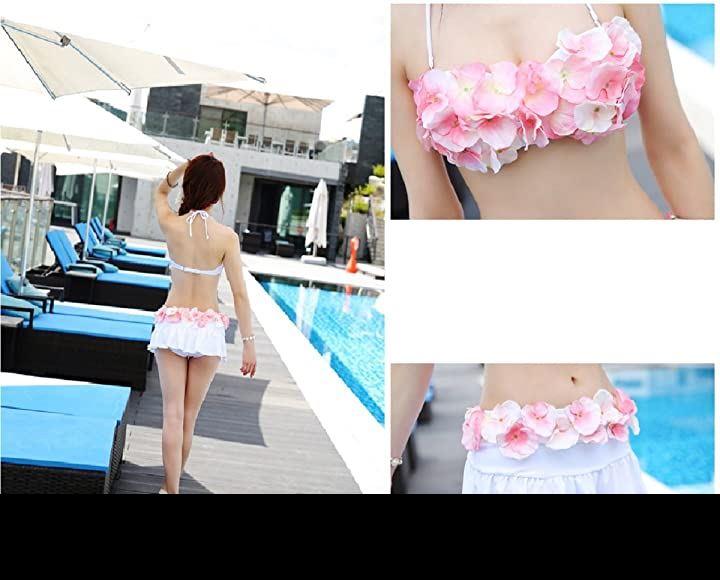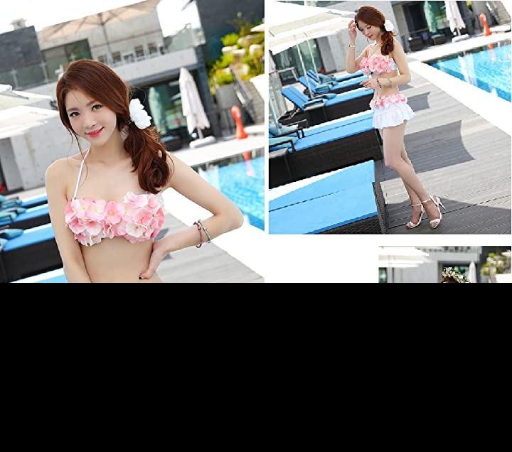 華やかなフラワーデザインが特徴的なバンドゥタイプのレディースビキニに、スカートが付いたセットです。