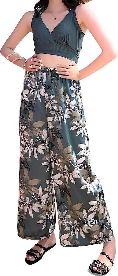 ボトムスは、深めタイプのパンツとシースルーが涼し気なロング丈のワイドパンツ付き 落ち着いたデザインながらもリゾート感のある雰囲気に仕上げてくれる一着です。