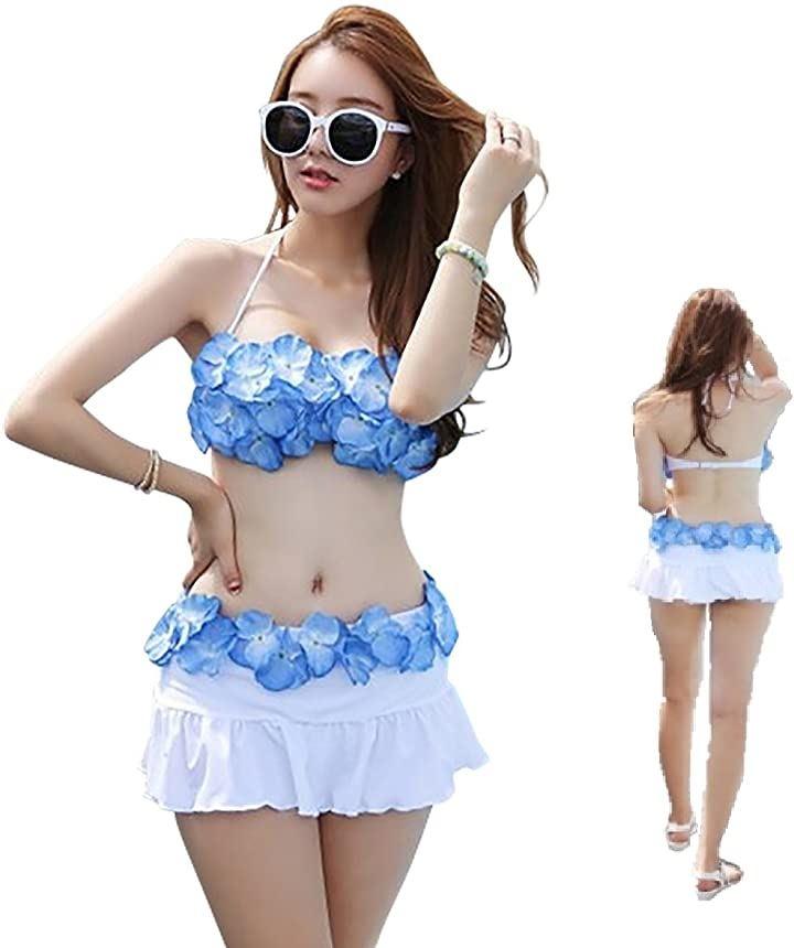 華やかなフラワーデザインが特徴的なバンドゥタイプのレディースビキニに、スカートが付いたセットです。
