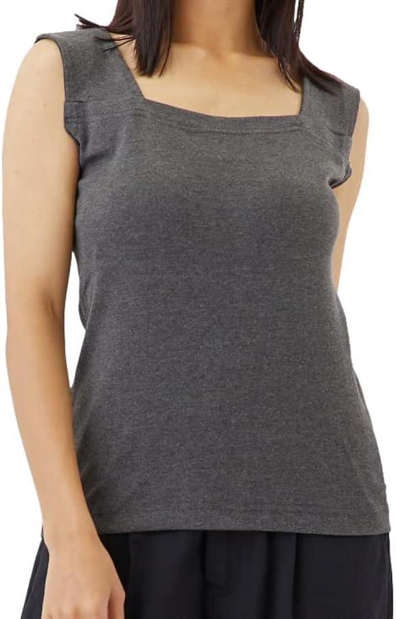 ブラひもや胸元がしっかり隠れるスクエアネックのタンクトップの為胸チラもしっかり防止。