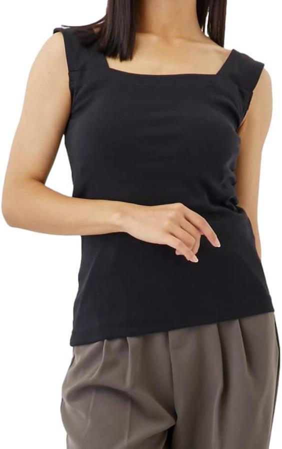 ブラひもや胸元がしっかり隠れるスクエアネックのタンクトップの為胸チラもしっかり防止。