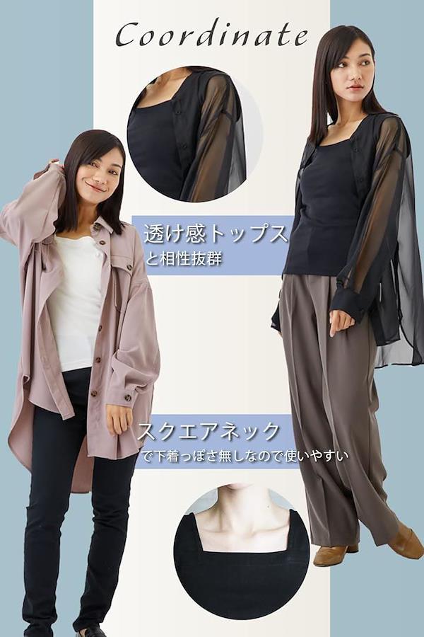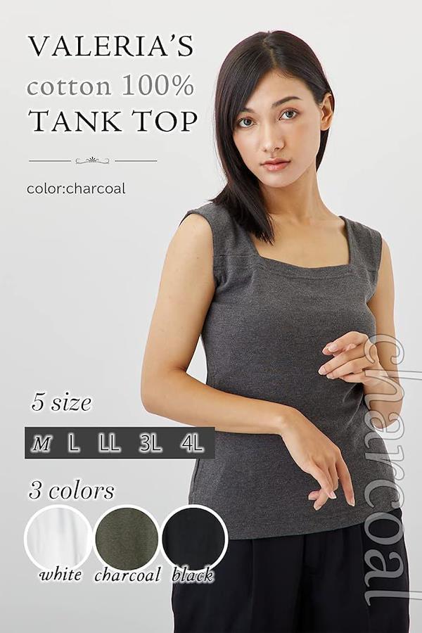 透け感のあるトップスに合わせることで、インナーとしてだけでなくレイヤードスタイルにもピッタリのタンクトップです。