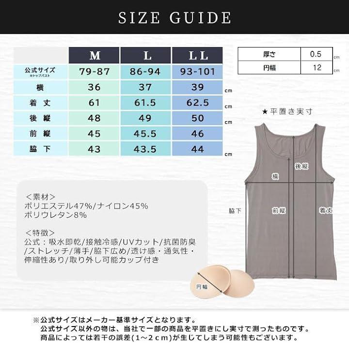 「内容」接触冷感タンクトップ カップ付パット付き