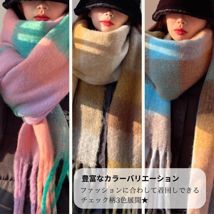 「商品説明」 ふんわりとした厚手素材が首元を優しく包み込む、ボリューム感たっぷりの大判マフラーです。