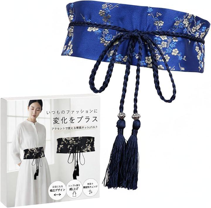 「デザイン・印象」 光沢感のあるサテン調ジャカード生地を使用した、帯風デザインの幅広ベルトです。