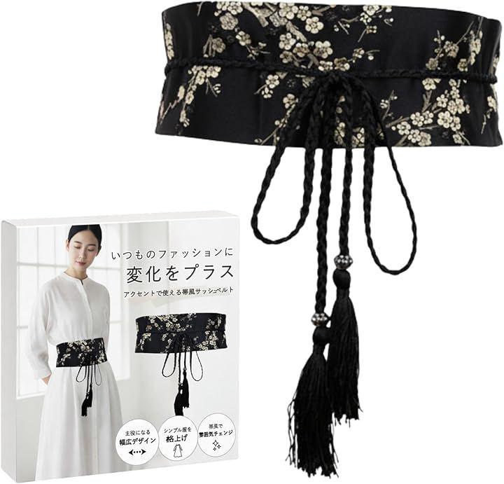 「デザイン・印象」 光沢感のあるサテン調ジャカード生地を使用した、帯風デザインの幅広ベルトです。