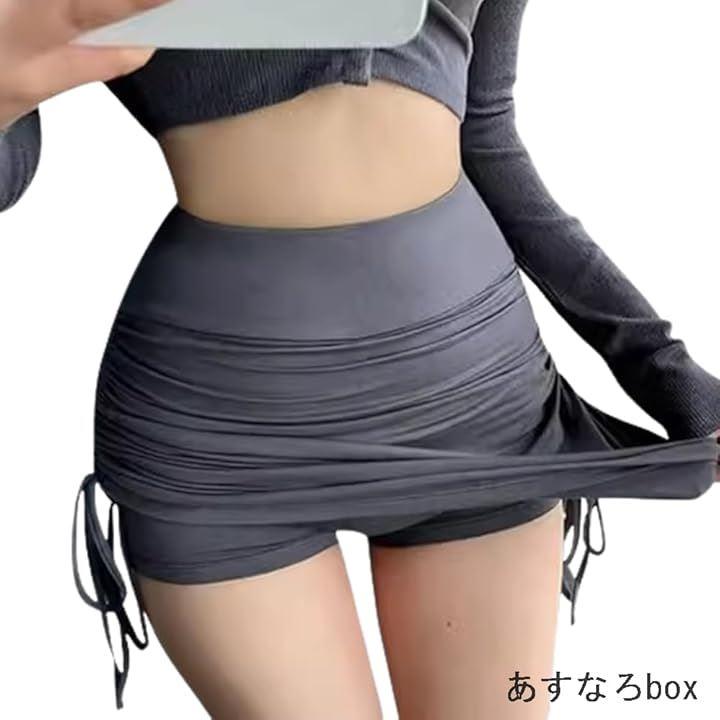 Women's Tight High-Waisted Mini Skirt with Side Shirring and Inner Pants, Made of Stretch Fabric, Simple and Solid Color