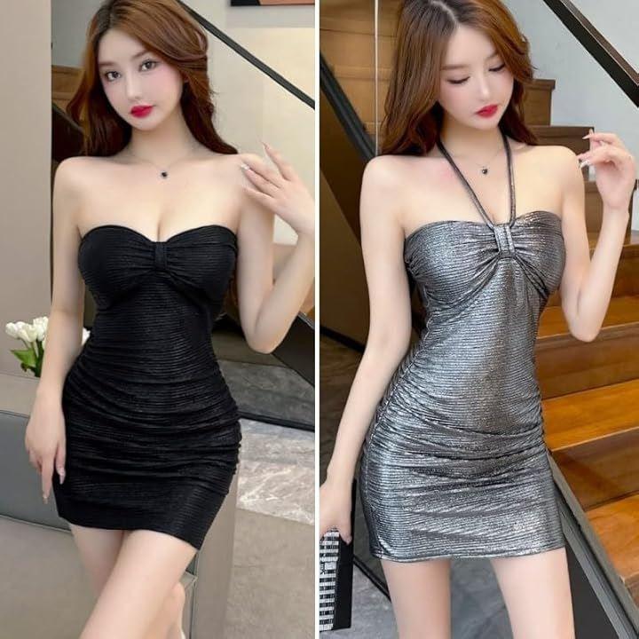 胸元に大きなリボンをつけたようなデザインがキュートで、タイトミニで艶っぽく仕上がるワンピース、パーティードレスです。