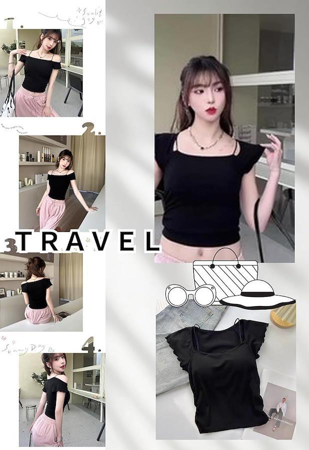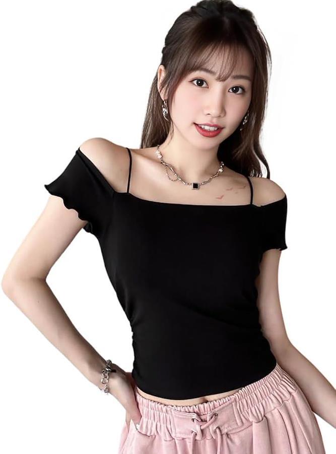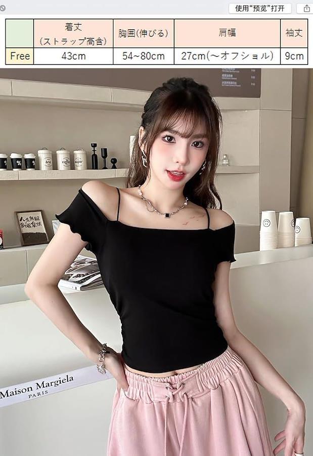 スタイルよく可愛いイメージのブラカップ付きのオフショルカットソーになります。