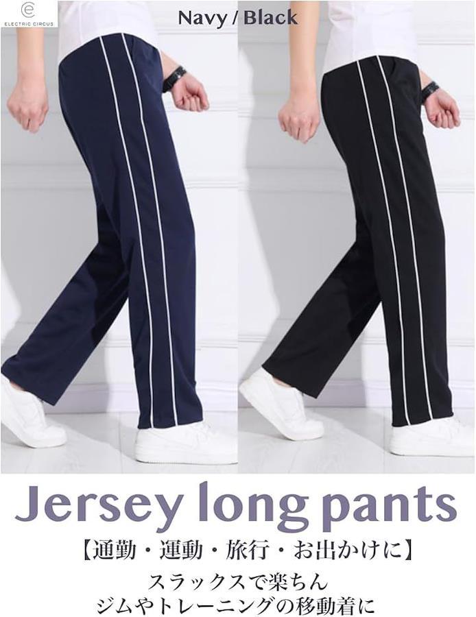 「通勤・運動・旅行・お出かけに」スラックスで楽ちん・ジムやトレーニングの移動着に・伸縮性のあるジャージ素材と軽い着心地・動きやすいデザイン・らくちんウエストゴムのボトムス(ポケット付き)・普段着からアクティブシーンに、旅行やちょっとしたお出かけにも使える・幅広い年齢層におすすめ