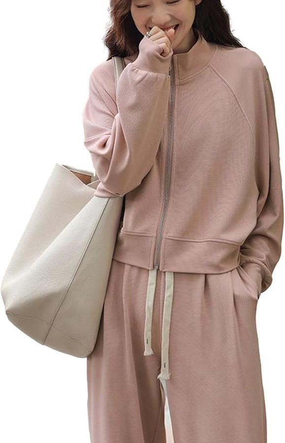 パンツはウエストゴム&紐付きで調節可能、ポケット付きで実用性も〇 細部にまでこだわった、大人の女性にぴったりの「おしゃれで実用的」なスウェットセットアップです。