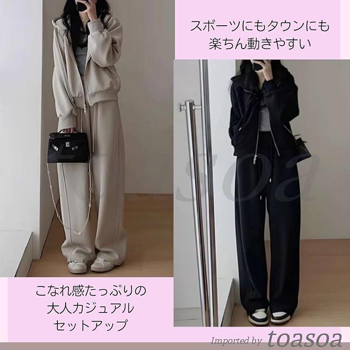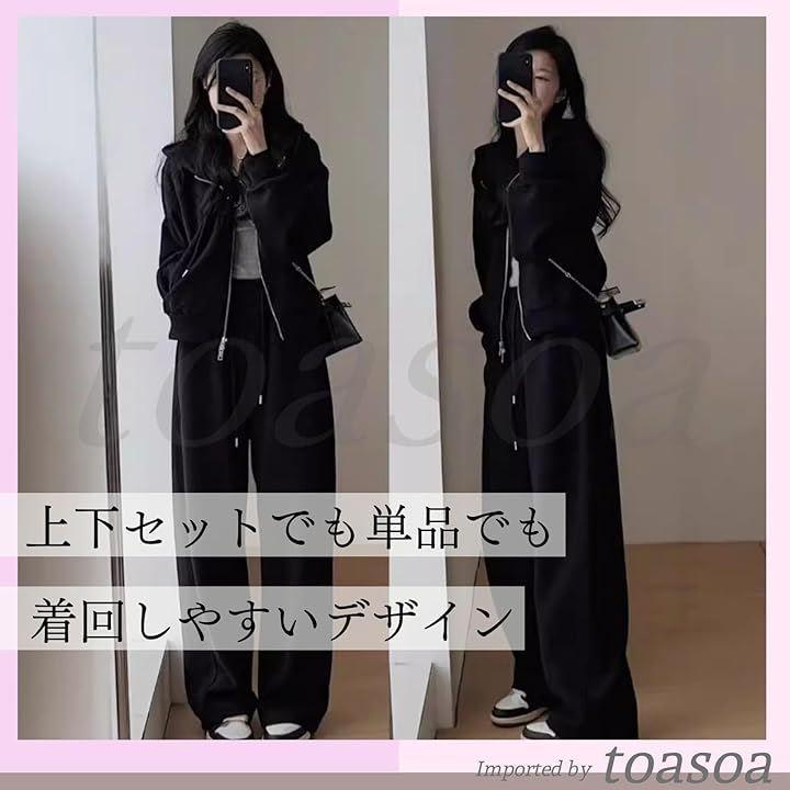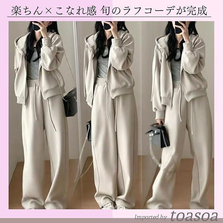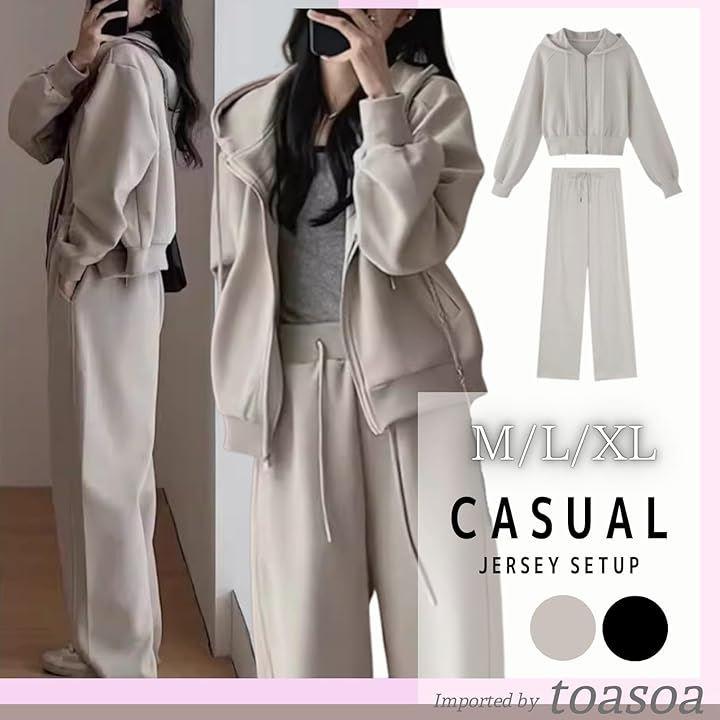 カジュアル感たっぷりのデザインでスポーティーコーデにぴったりなパーカーとロングパンツの2点セット。