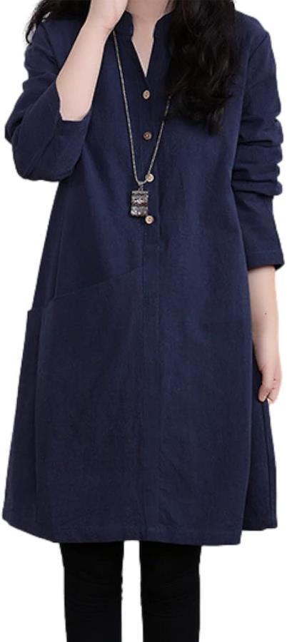Women's Tunic Fashionable Shirt Blouse Long Sleeve Knee Length Dress Skipper Cute Casual Top Spring Summer Autumn