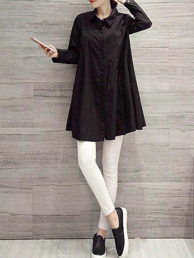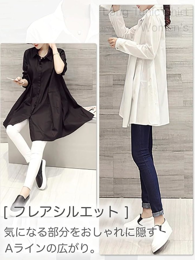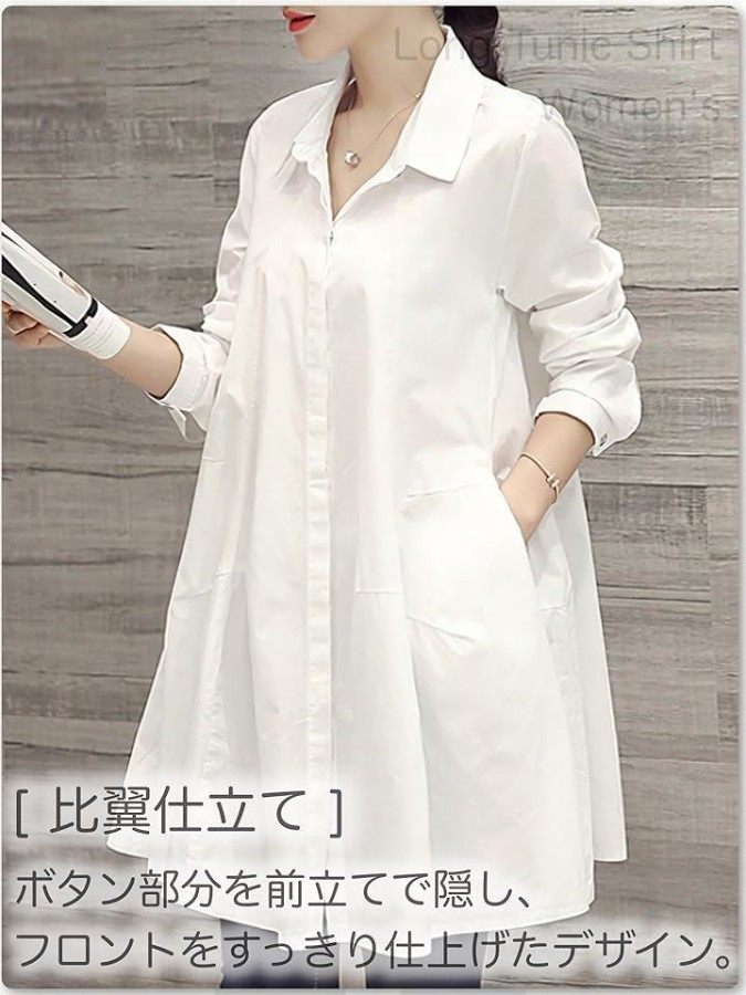 チュニックとしてもシャツワンピ風にも使えるロング丈。